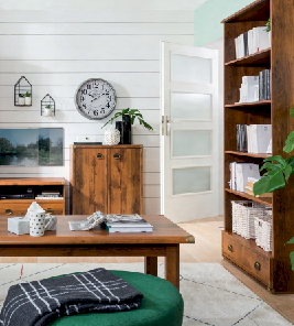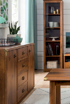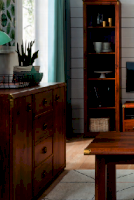 Оригинальный дизайн фасада, точно повторяющий текстуру отполированного дерева отлично впишется в современный интерьер. Дополняет общую композицию необыкновенная форма ручек и закругленные металлические края элементов мебели. В коллекцию Indiana входит большой ассортимент элементов мебели, который поможет создать интересный интерьер в комнате.