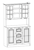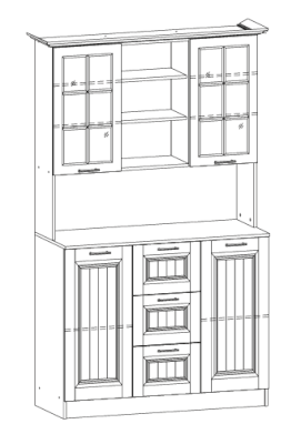Очарование простой деревенской жизни привносит в дом буфет «Кантри». Отделка нежных холодных оттенков создает атмосферу чистоты и свежести, текстура массива дерева смотрится натурально и дорого. Это очень удобная мебель! В ней предусмотрено место для как нарядных чайных сервизов (на полочках за стеком), так и для обычных кастрюль (в закрытых шкафчиках).