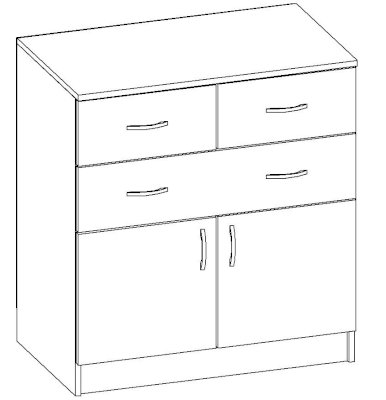 • Корпус, полки и фасады изготовлены из ЛДСП 16 мм с кромкой ПВХ 0,4 мм.