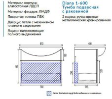 Тумба Diana 1-600 (Виго) – товар доступен к покупке в интернет-магазине dommebeli-v-vykse.ru. Цена – 11 059 руб. без учета доставки. Стоимость дополнительных услуг и сроки получения мебели уточняйте у менеджера. Возможен безналичный расчет, оплата по карте на сайте.