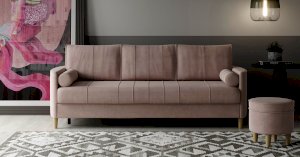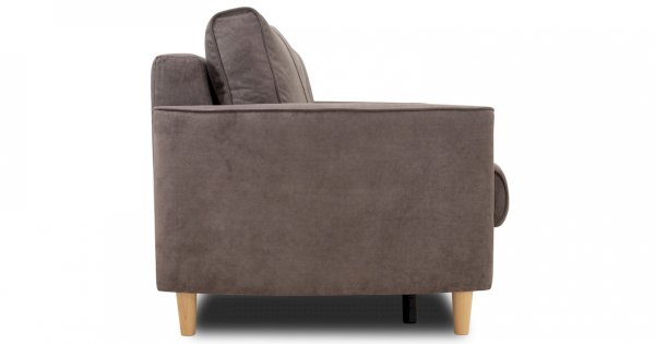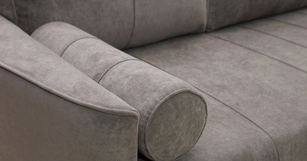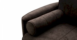 Кант на торцах приспинyых подушек, сиденья и подлокотников. Защипы на сиденье и приспинных подушках. Две декоративные подушки-валика с защипами.