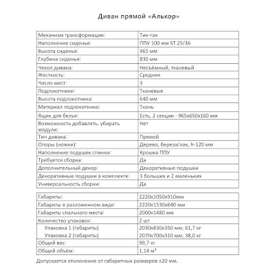 Диван Алькор (Аквилон) – товар доступен к покупке в интернет-магазине dommebeli-v-vykse.ru. Цена – 63 981 руб. без учета доставки. Стоимость дополнительных услуг и сроки получения мебели уточняйте у менеджера. Возможен безналичный расчет, оплата по карте на сайте.