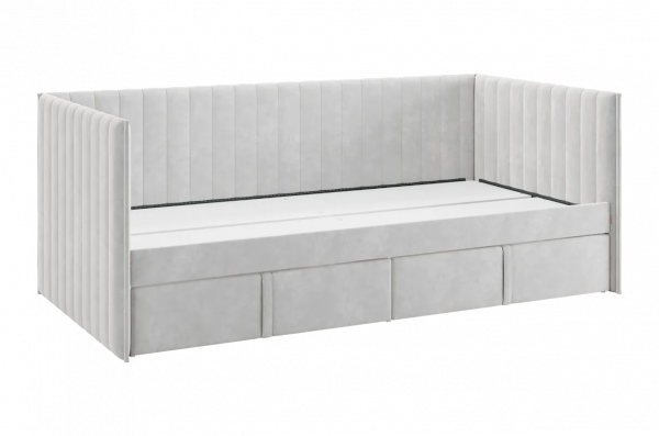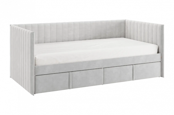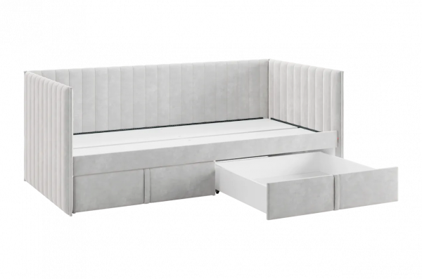 Кровать с ящиками Твикс (Софа) 90х200 см – это идеальное решение для компактного и функционального обустройства спальни или детской комнаты. Изготовленная из высококачественных материалов, таких как ДСП толщиной 16 мм, мягкого наполнителя и велюра, она сочетает в себе современный дизайн и практичность.