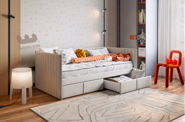 Комфорт вашего сна обеспечивают мягкие элементы изголовья, боковин, корпуса и фасадов ящиков, обитые нежным велюром. Эта уютная обивка не только добавляет эстетическую ценность, но и делает кровать более безопасной, особенно для детей. Кроме того, высококачественный наполнитель из ППУ обеспечивает отличную поддержку и комфорт во время сна.