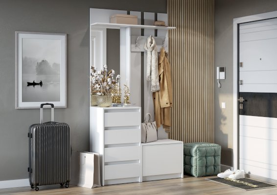 - Вешалка выполнена полностью без ручек, ящики открываются с помощью захвата рукой, на дверцах установлена система открывания PUSH-TO-Open