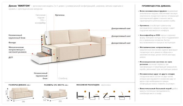 Диван Милтон (Империал) – товар доступен к покупке в интернет-магазине dommebeli-v-vykse.ru. Цена – 60 788 руб. без учета доставки. Стоимость дополнительных услуг и сроки получения мебели уточняйте у менеджера. Возможен безналичный расчет, оплата по карте на сайте.