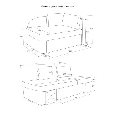 Детский диван Умка (Аквилон) – товар доступен к покупке в интернет-магазине dommebeli-v-vykse.ru. Цена – 26 202 руб. без учета доставки. Стоимость дополнительных услуг и сроки получения мебели уточняйте у менеджера. Возможен безналичный расчет, оплата по карте на сайте.