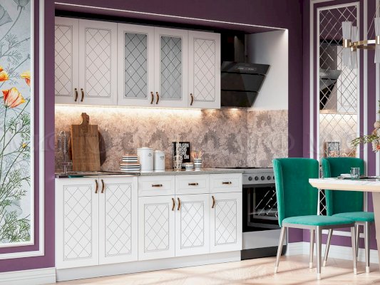 Модульная кухня Ирина Белый матовый (Миф) – товар доступен к покупке в интернет-магазине dommebeli-v-vykse.ru. Цена – 15 355 руб. без учета доставки. Стоимость дополнительных услуг и сроки получения мебели уточняйте у менеджера. Возможен безналичный расчет, оплата по карте на сайте.