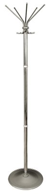 Вешалка напольная на 5 крючков. Утяжеленное двойное основание. Крючки и основание вешалки напольной выполнены из серого металлика.