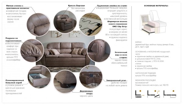 Диван Бергамо (Империал) – товар доступен к покупке в интернет-магазине dommebeli-v-vykse.ru. Цена – 92 132 руб. без учета доставки. Стоимость дополнительных услуг и сроки получения мебели уточняйте у менеджера. Возможен безналичный расчет, оплата по карте на сайте.