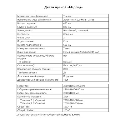 Диван Мадрид (Аквилон) – товар доступен к покупке в интернет-магазине dommebeli-v-vykse.ru. Цена – 66 360 руб. без учета доставки. Стоимость дополнительных услуг и сроки получения мебели уточняйте у менеджера. Возможен безналичный расчет, оплата по карте на сайте.