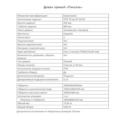 Диван Пиксель (Аквилон) – товар доступен к покупке в интернет-магазине dommebeli-v-vykse.ru. Цена – 30 317 руб. без учета доставки. Стоимость дополнительных услуг и сроки получения мебели уточняйте у менеджера. Возможен безналичный расчет, оплата по карте на сайте.