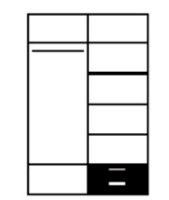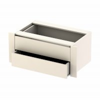 Шкаф можно дополнить встраиваемым модулем с выдвижными ящиками. Модуль устанавливается на любом уровне и в любой секции, но рекомендуемое место размещение - нижняя секция отделения с полками.