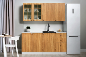Кухонный гарнитур Техно-1 1,7 м (Миф) – товар доступен к покупке в интернет-магазине dommebeli-v-vykse.ru. Цена – 22 984 руб. без учета доставки. Стоимость дополнительных услуг и сроки получения мебели уточняйте у менеджера. Возможен безналичный расчет, оплата по карте на сайте.