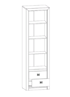 Шкаф с отделениями за распашной глухой дверью. В нижней части расположены 2 выдвижных ящика на металлических роликовых направляющих.